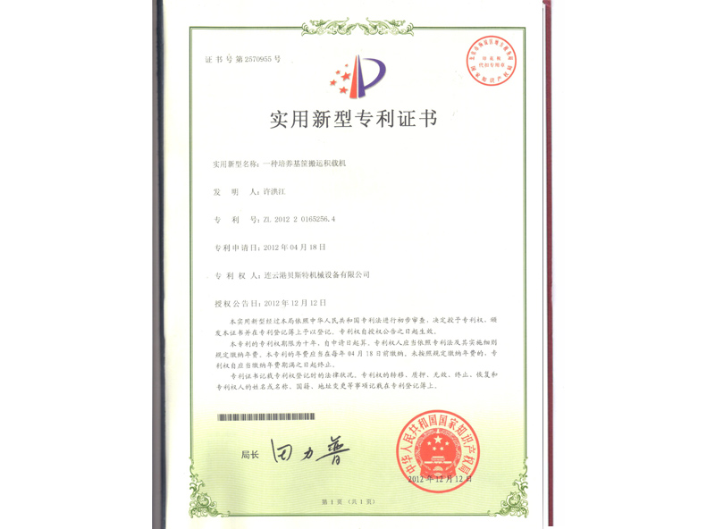 一種培養(yǎng)基筐搬運(yùn)積載機(jī)(專利證書)